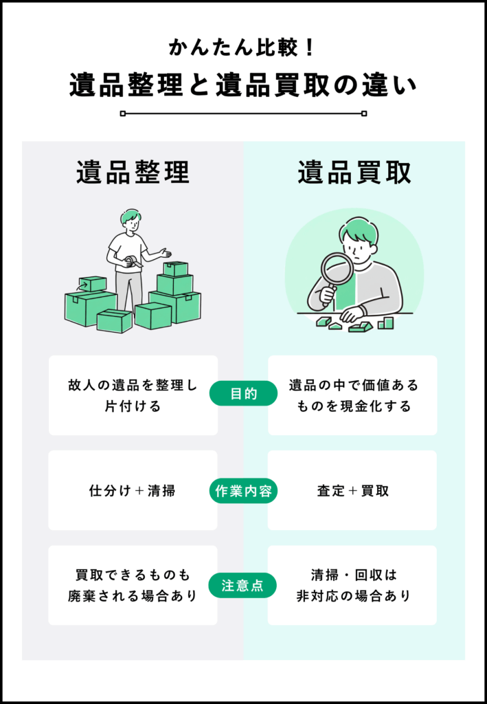 遺品整理と遺品買取の流れの違い・向いているケースは?