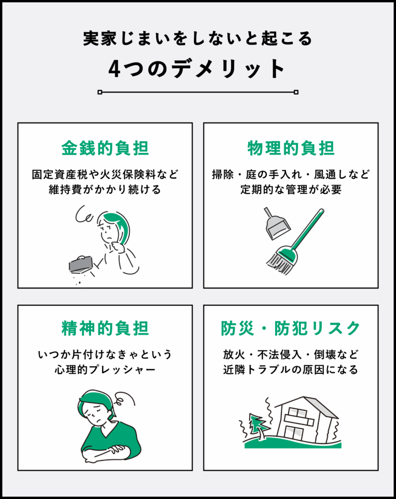 空き家となった実家の放置はさまざまなデメリットを発生させます。